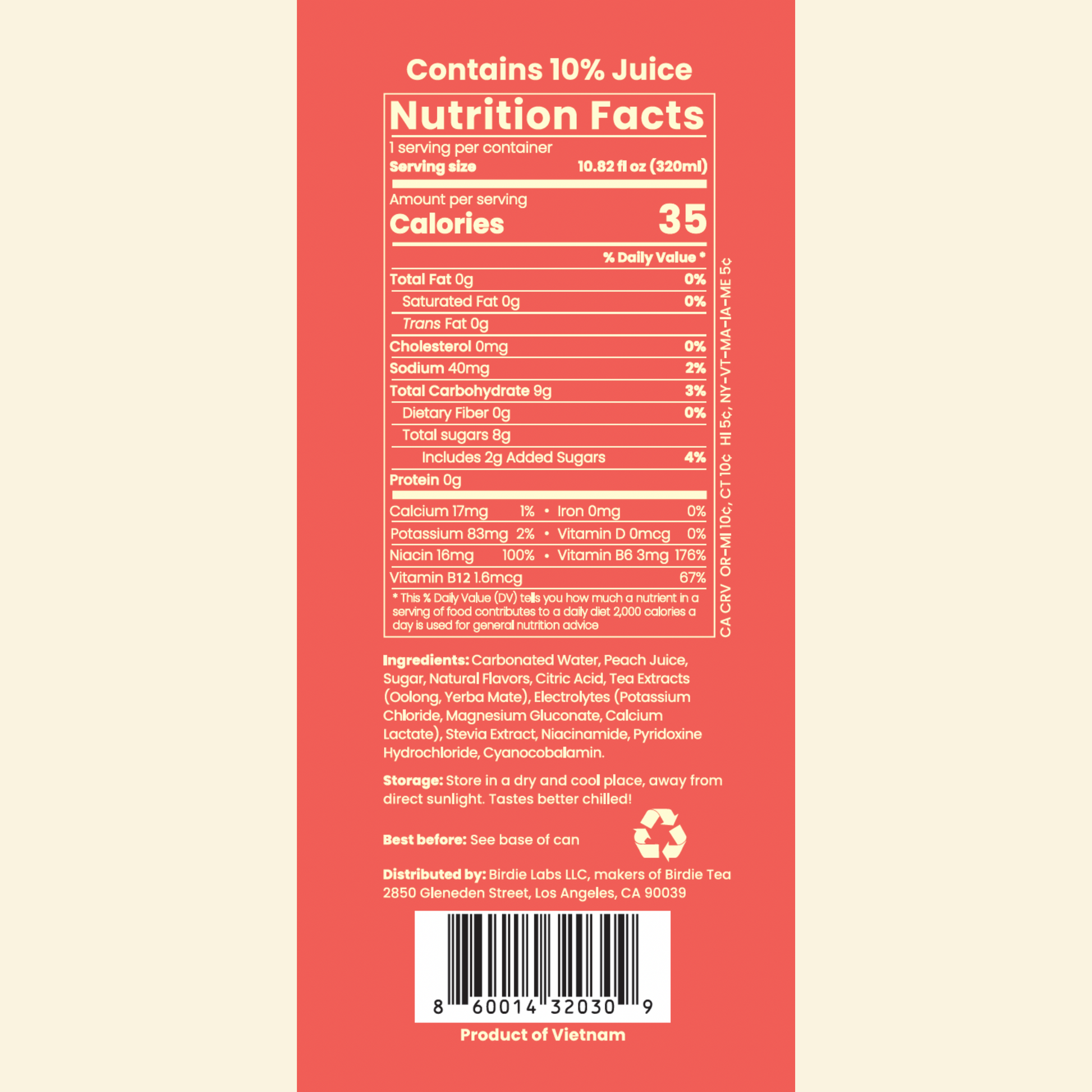 Made with natural tea extracts for balanced refreshment, plus electrolytes and vitamin B to keep you moving and feeling your best. Birdie is crafted with real ingredients — never concentrates, artificial flavors, or weird stuff.
